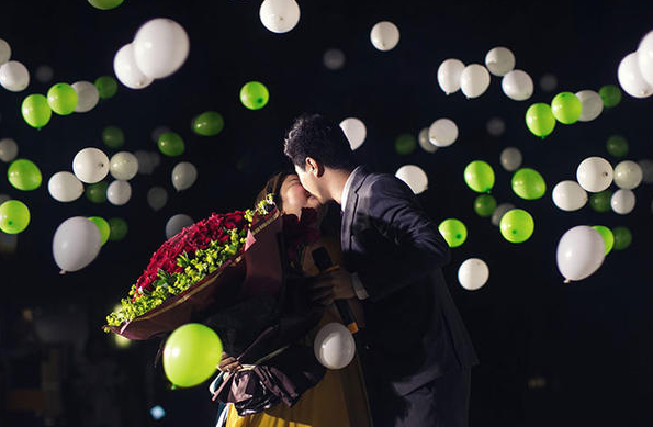 每个女孩子关于烟花的喜爱都是只增不减的,那么无妨在求婚的时分为她策划一场浪漫的烟花求婚吧,在公园的草坪上,三五个小伙伴一同游戏、烧烤、点起烟花,在最灿烂的时刻,放飞准奋的气球束,上面的广告牌写着: I LOVE YOU,然后唱起你们之间的情歌,敞开你的表白吧,记住还有单膝跪地的拈戒。